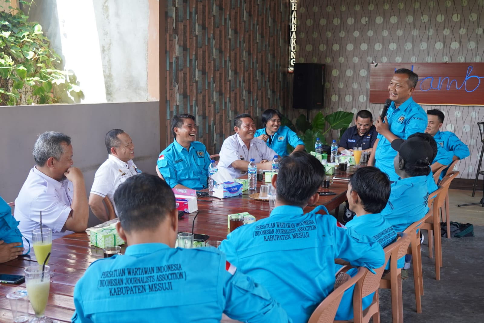 Jajaran Pengurus Persatuan Wartawan Indonesia (PWI) Kabupaten Mesuji menggelar audiensi sekaligus bersilaturahmi dengan Penjabat (Pj) Bupati Mesuji Drs.Sulpakar.,M.M., di rumah makan Hambakung, Desa Berasan Makmur, Kecamatan Tanjung Raya, Kamis(07/07).