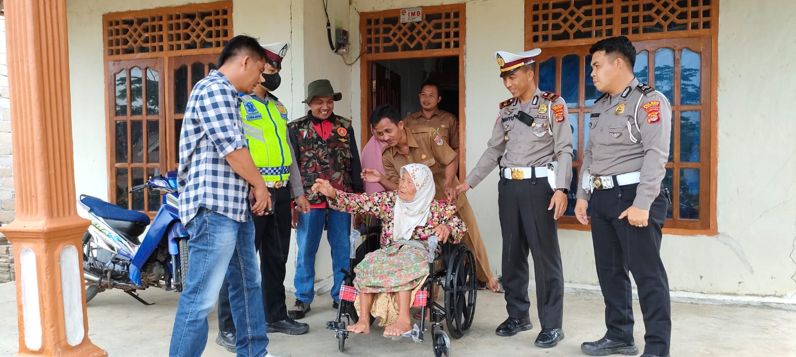 Wujud empati dan kepedulian kepada masyarakat, Jajaran Polres Mesuji memberikan bantuan kursi roda dan paket sembako kepada warga yang menderita lumpuh di Desa Pancawarna dan Desa Gedung Sri Mulyo Kecamatan Way Serdang Kabupaten Mesuji, Selasa (10/7/2022) Dalam rangkaian hari ulang tahun (HUT) Bhayangkara yang ke-76.