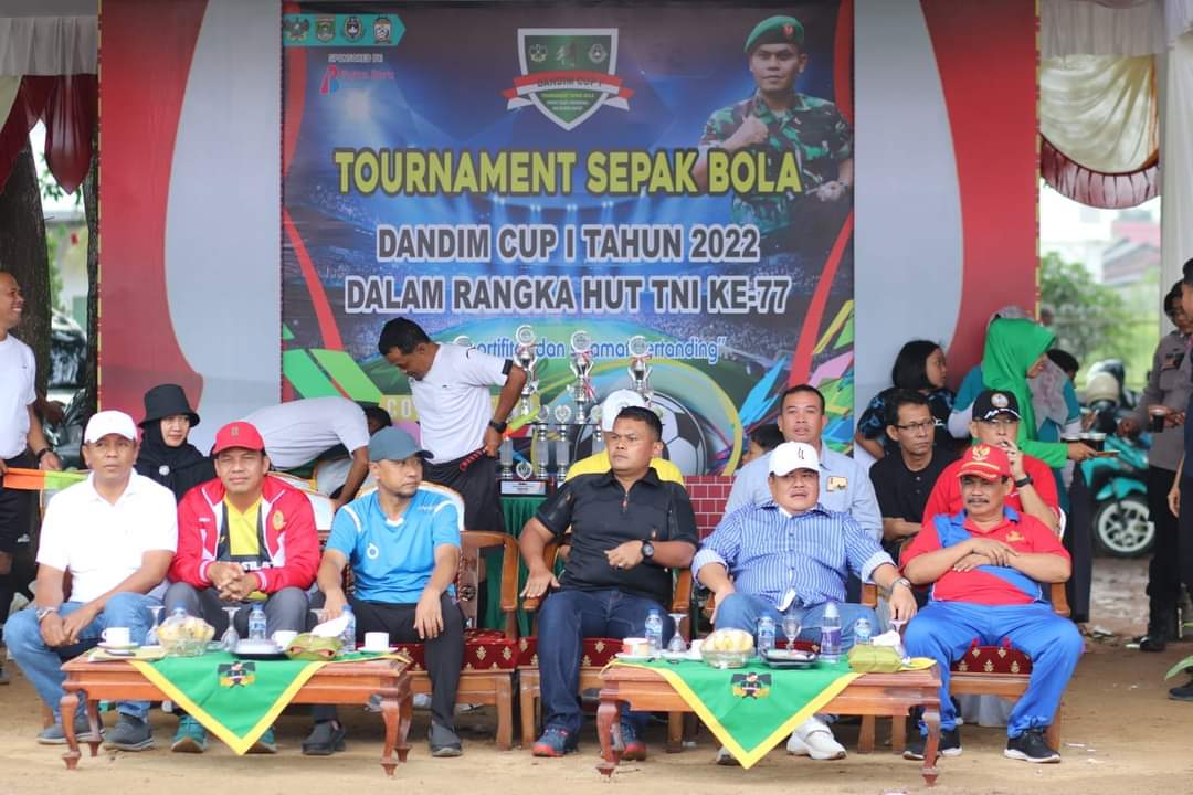 Bupati Lampung Tengah H. Musa Ahmad S.Sos, menghadiri pembukaan turnamen sepakbola Dandim Cup I Tahun 2022, dalam rangka memperingati HUT TNI Ke 77 yang di selenggarakan di Lapangan Poncowati, Kecamatan, Terbanggi Besar.