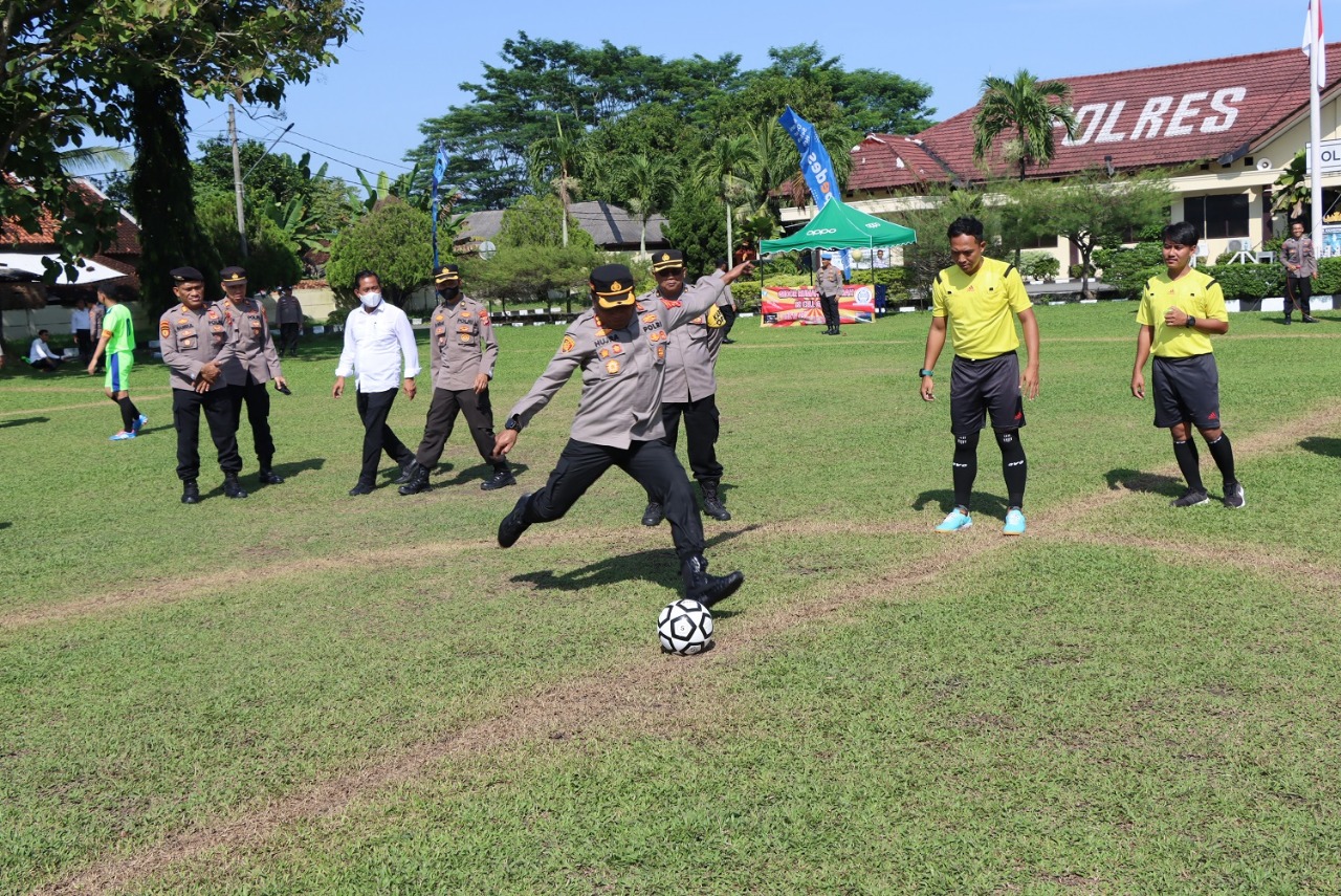 Kapolres menendang bola tanda dimulainya turnamen, dan pertandingan perdana hari ini yakni match ke-1, Staff 1 vs Gabungan Polsek Menggala dan Gedung Aji, lalu match ke-2, Sat Intelkam vs Gabungan Polsek Dente Teladas dan Rawa Pitu.(*)