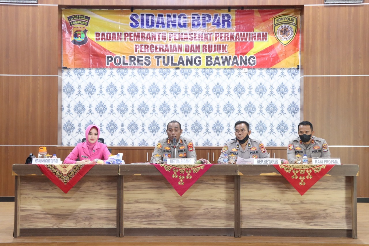 Polres Tulang Bawang, Polda Lampung, menggelar Sidang Badan Pembantu Penasehat Perkawinan Perceraian dan Rujuk (BP4R) terhadap tiga orang personelnya.