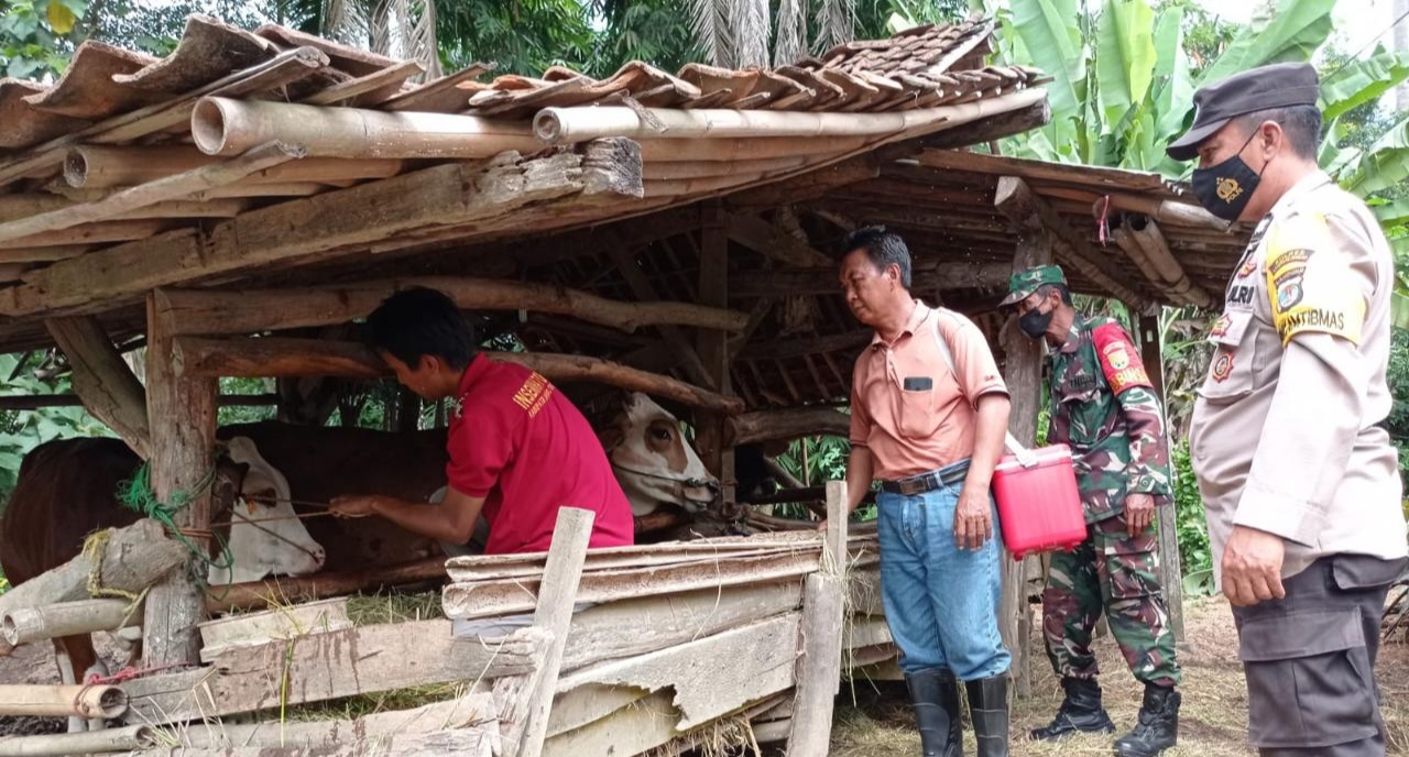 Guna mencegah penyebaran wabah penyakit mulut dan kuku (PMK) pada hewan ternak, TNI dan Polri Polres Lampung Tengah terus lakukan pendampingan dalam upaya penanggulangan PMK dengan vaksinasi di Kampung Sapto Mulyo Kecamatan Kotagajah Lamteng Senin (15/8/22).